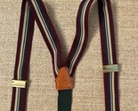 - Vintage Suspenders Striped Burgundy Green Leather Button On Braces Mens