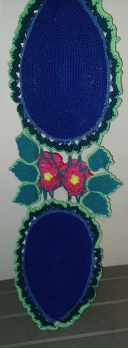 - Vintage Swans FLOWER POWER Floral Crewel Embroidered Table Runner POM POM 30x11"