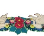 Vintage Swans FLOWER POWER Floral Crewel Embroidered Table Runner POM POM 30x11"