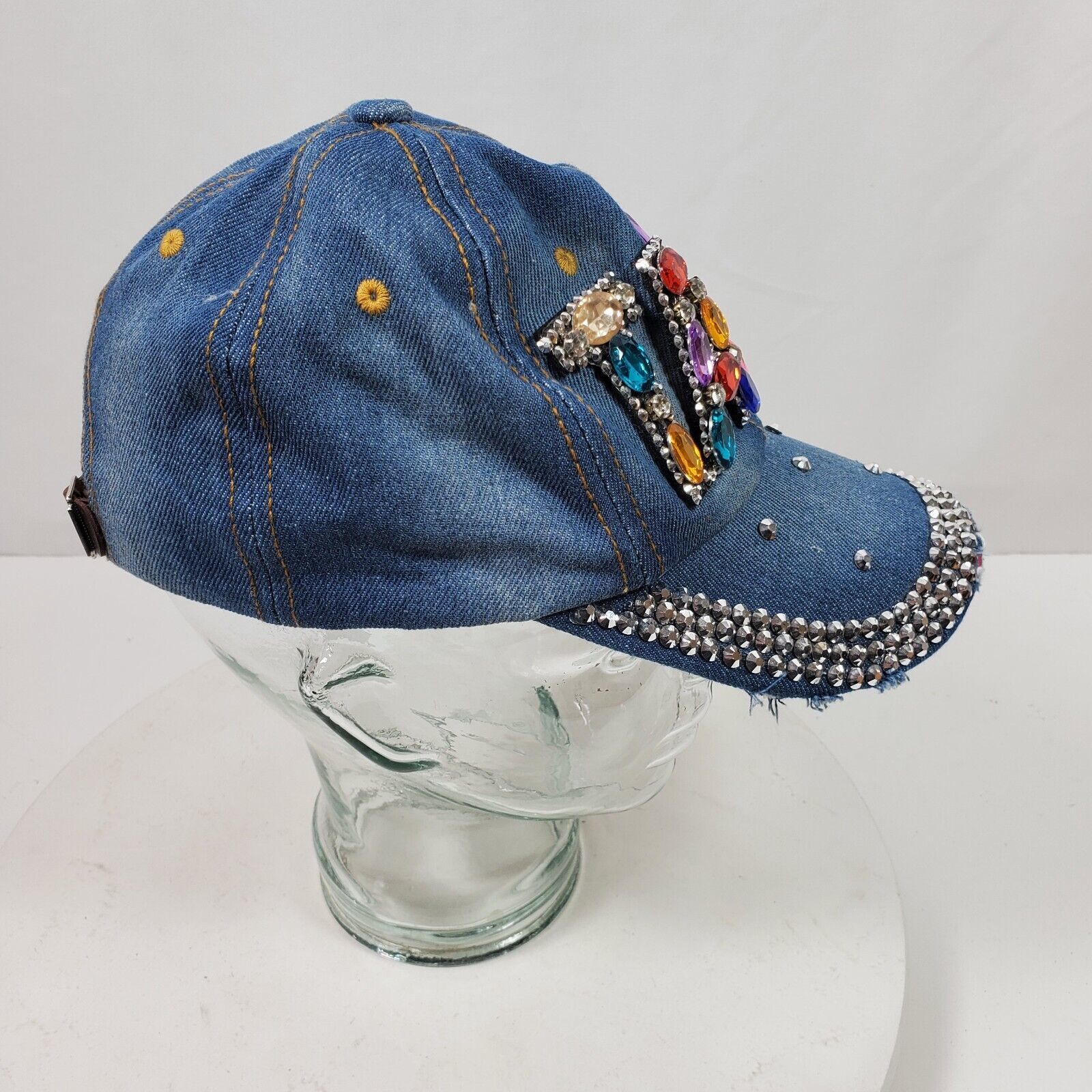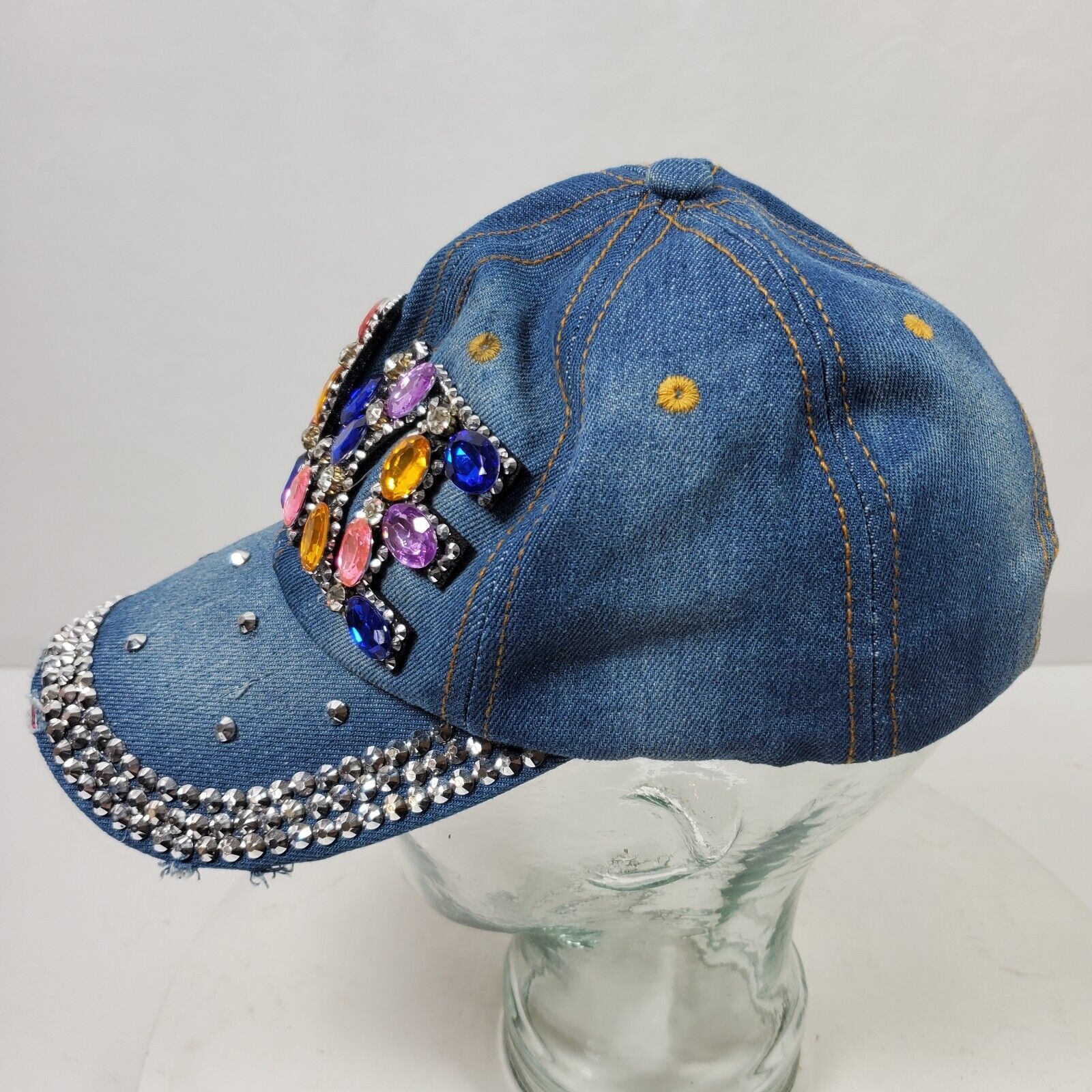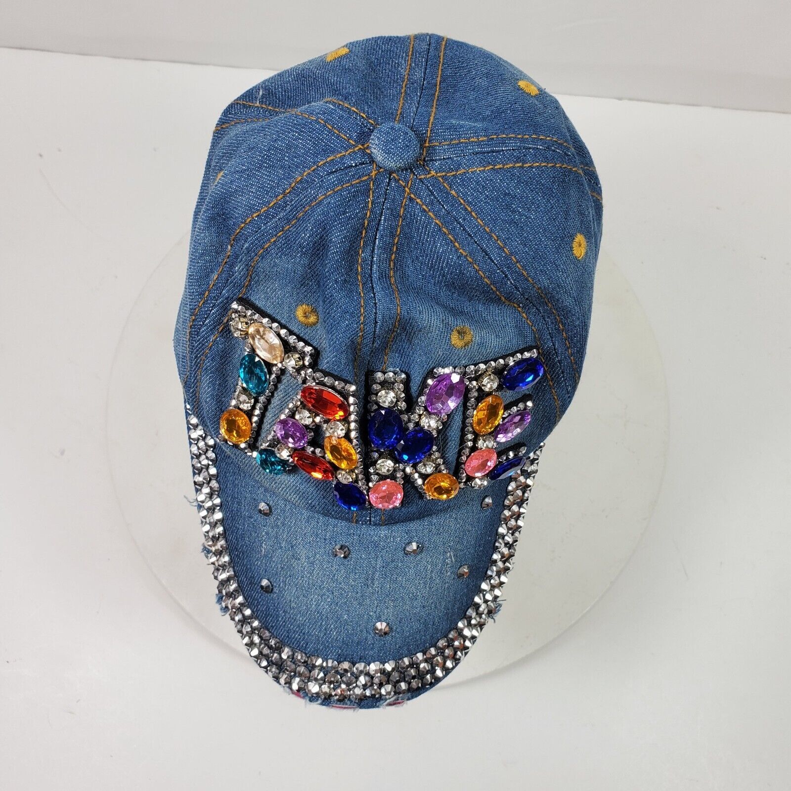 - Vintage TAKE Distressed Bling Hat Cap w/ Rhinestones Beads Sequins One Size