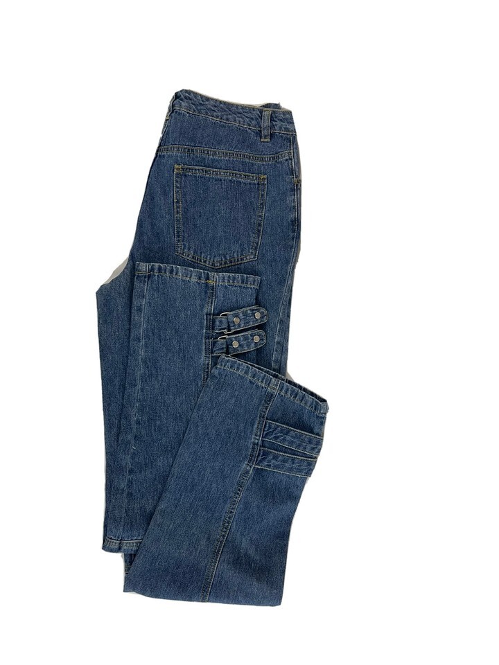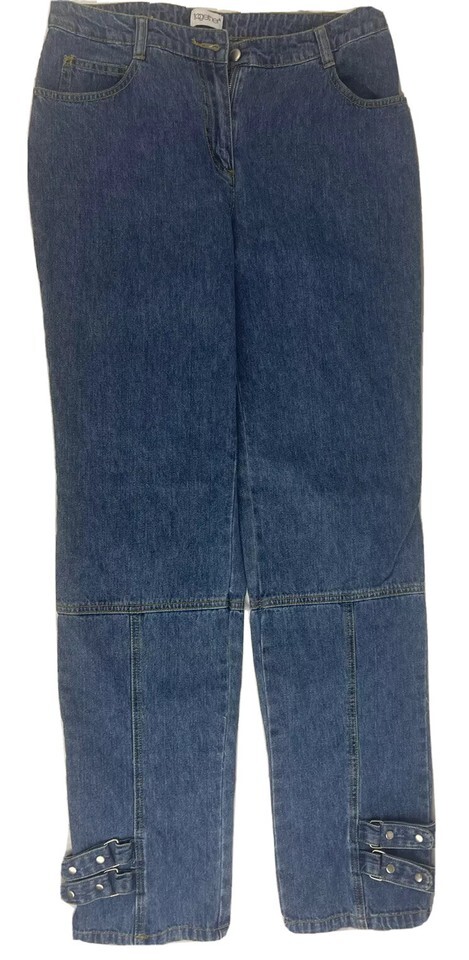 - Vintage TOGETHER Womens Jeans Denim Blue Snap Hem Detail High Rise Sz 8 Cotton