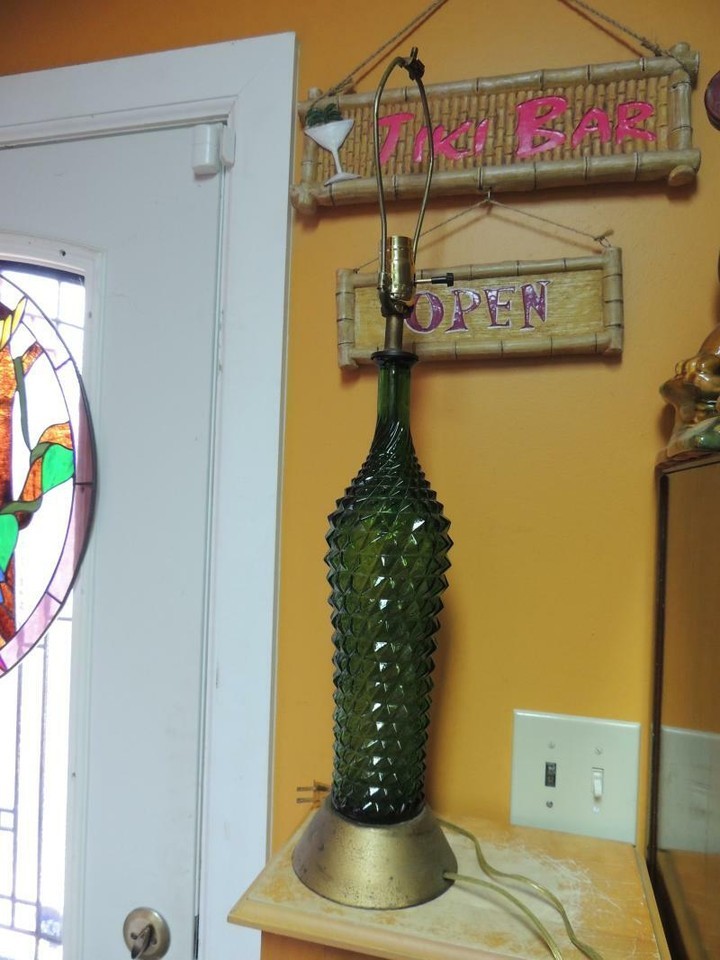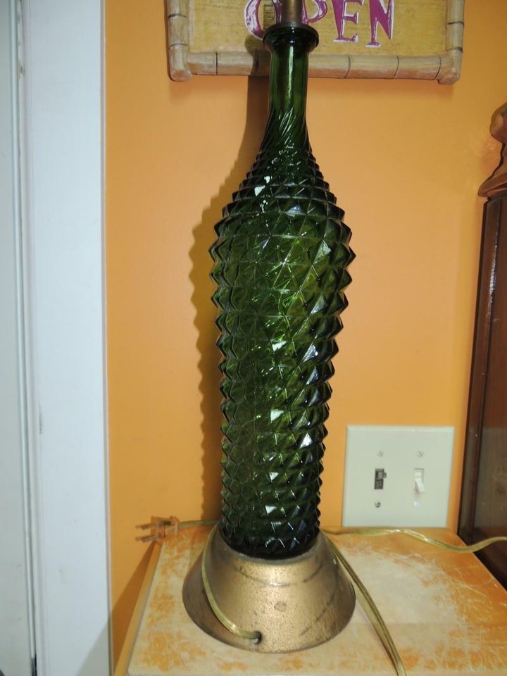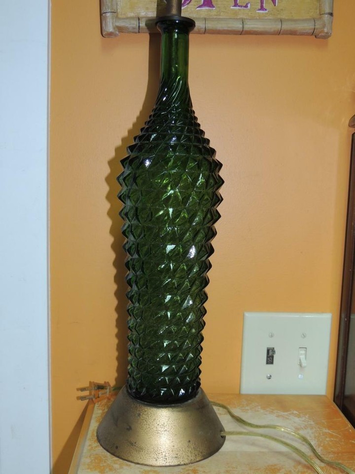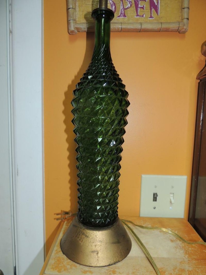 - Vintage Table Lamp 29" Green Twisted Diamond pattern Glass mid century bottle