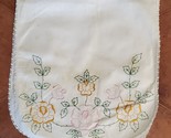 Vintage Table Runner Embroidery Crochet 36x16 Inch Pink Gold Green