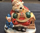 Primary image for Vintage Terra Cotta Hand Painted Santa Tea Candle Holder Christmas Holiday Light