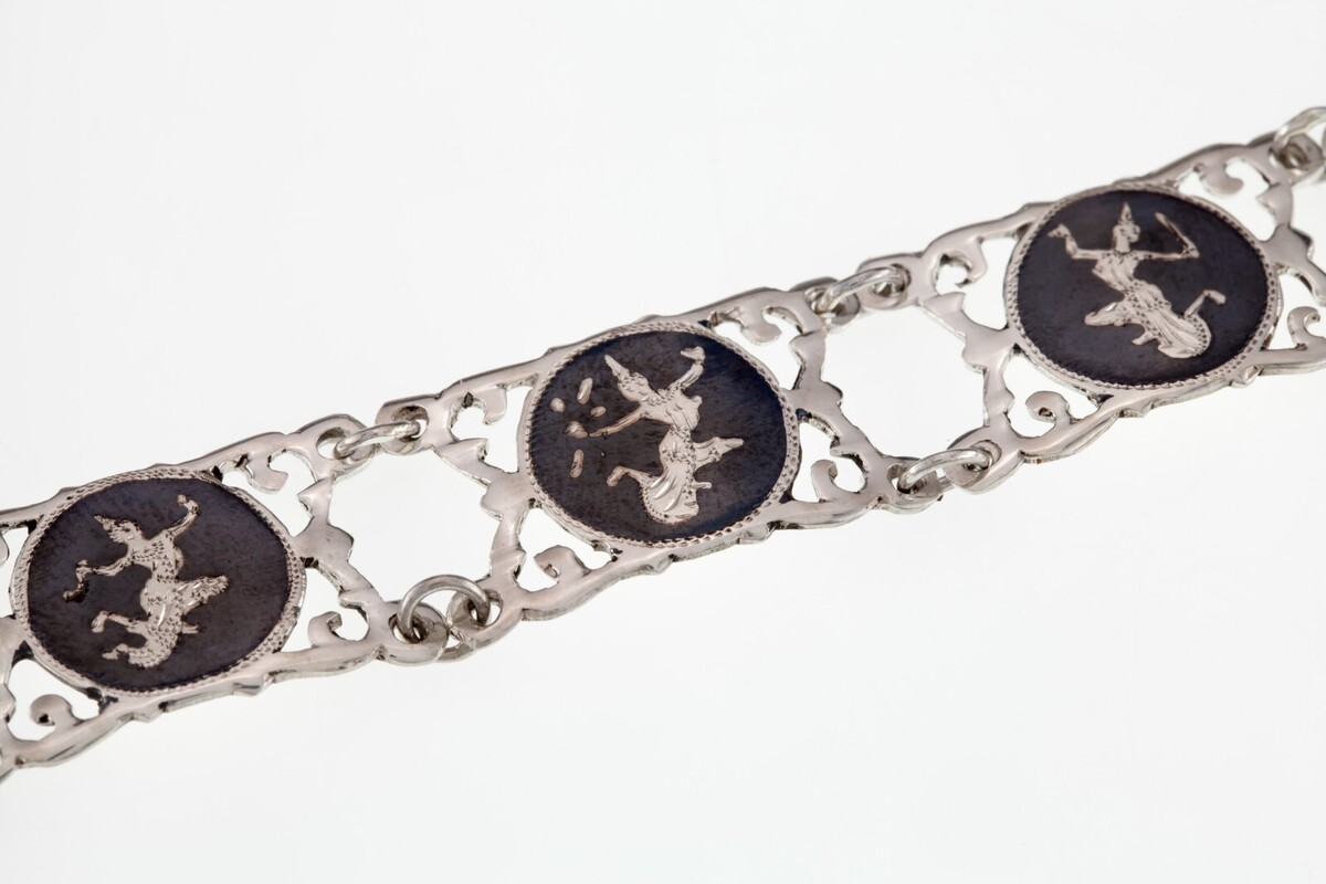 Gorgeous Hand made Bracelet with Dancer caricatures tooled on to links