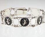Vintage Thai Silver Siam Niello Black Enamel Panel Bracelet 7.25"