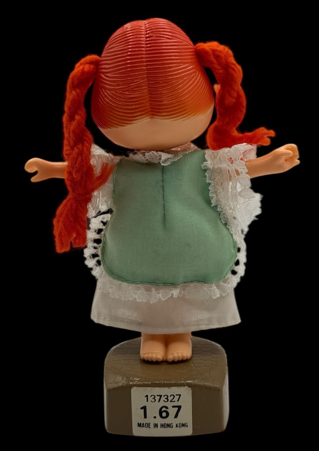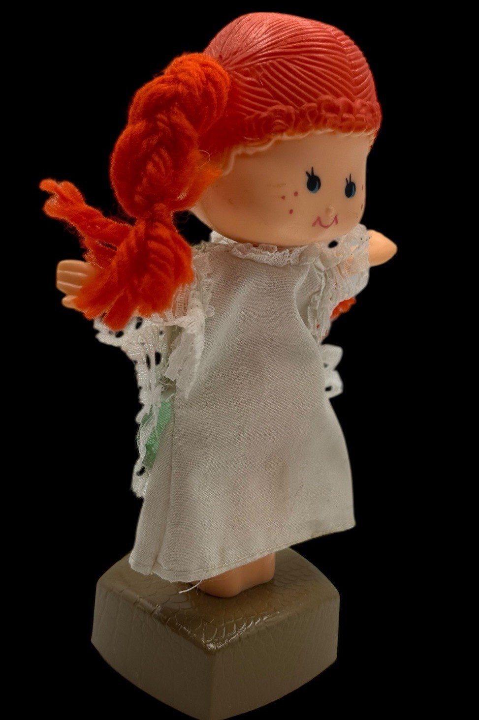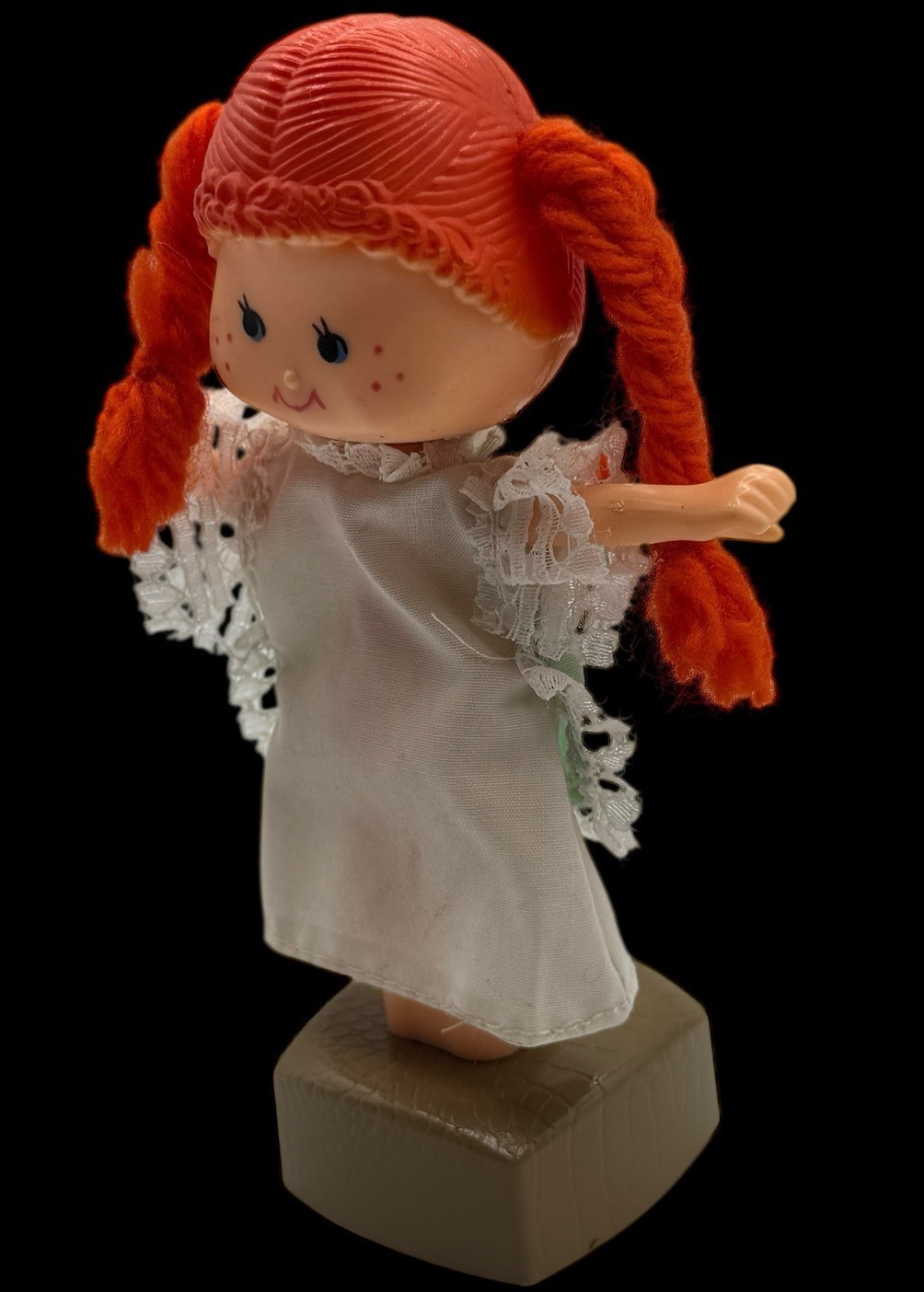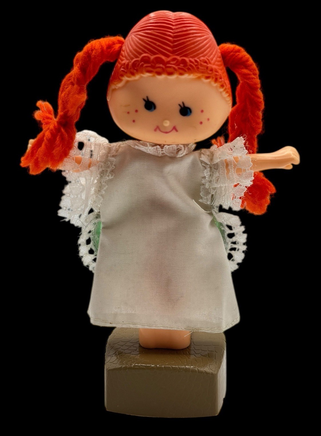- Vintage Thumb Push Button Puppet Toy Collapsible Plastic Doll Girl Orange Hair