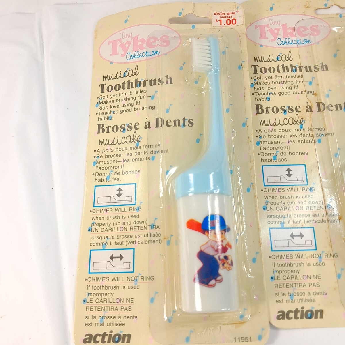 - Vintage Tiny Tykes Musical Toothbrush SET 2 Kids Toddler Chimes Baseball Boy
