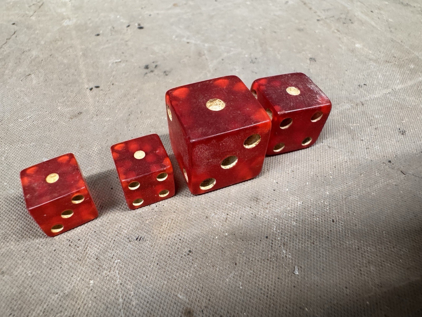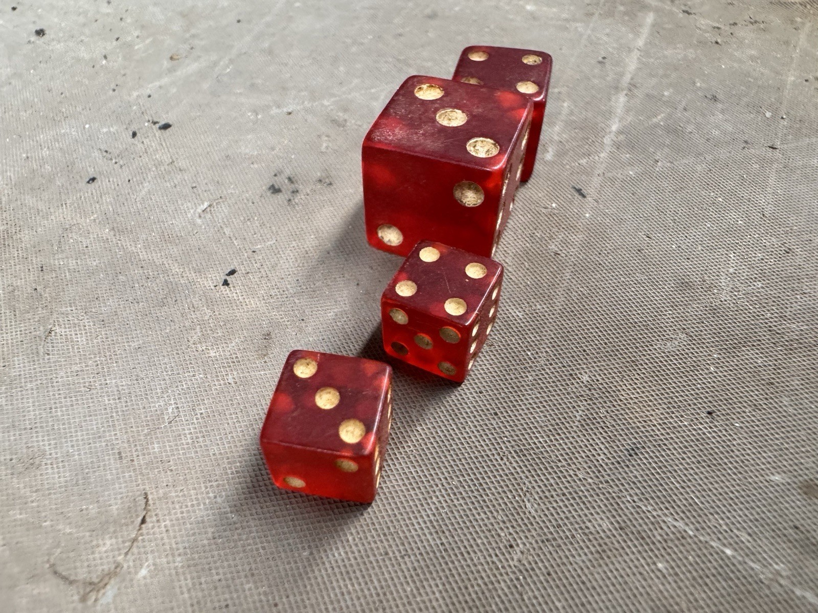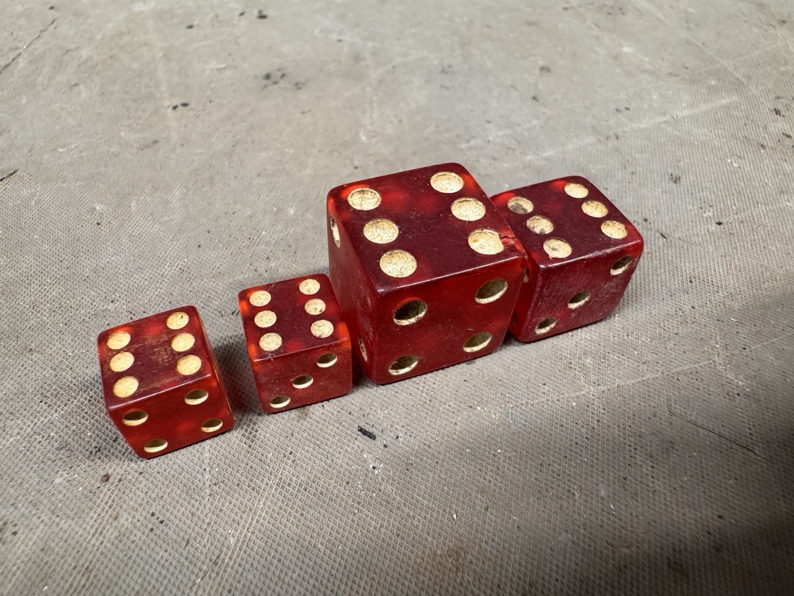 - Vintage Translucent Dice Bakelite Cherry Red Antique Game Celluloid Lot 4 Craps
