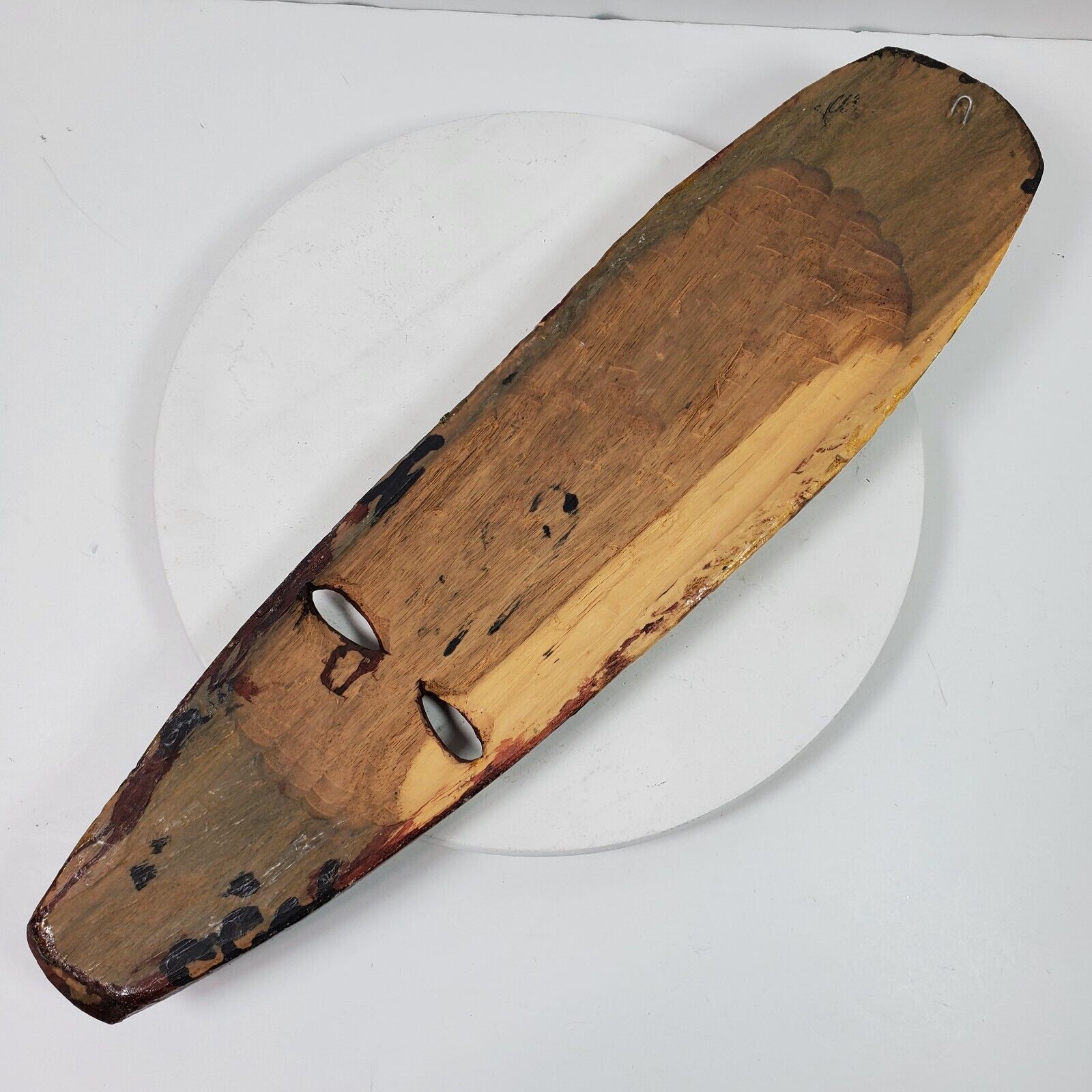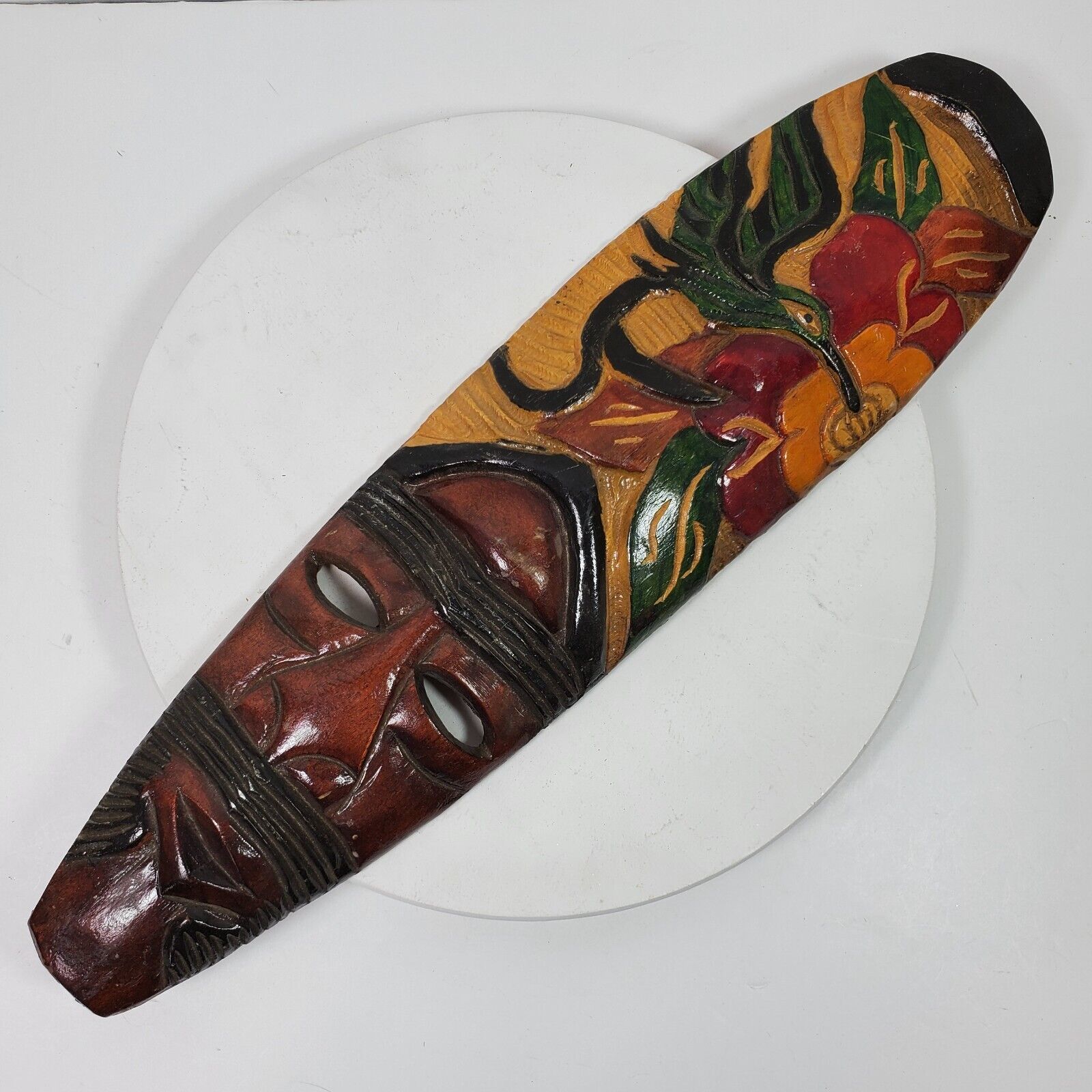 - Vintage Tribal Mask ART Wood Handcrafted Hand Painted Wall Mount 23x6 Inch