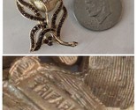 Diese Vintage Triferi -Brosche ist ein atemberaubendes Stück, das eine wunderschon gefertigte goldene Hortensienblume mit einem lilakfarbenen simulierten Stein in der Mitte verfügt. Die Brosche wird von Trifori unterschrieben und ist in einem ausgezeichneten Zustand. Das in der Brosche verwendete Metall ist unbekannt, hat aber ein goldenes Basismetall. Diese Brosche ist perfekt für alle, die Vintage- und antike Schmuck lieben. Es ist ein einzigartiges Stück, das eine großartige Erganzung zu jeder Sammlung darstellt. Die Brosche stammt aus den USA und hat eine blumige Form. Es kann als Modeaccessoire getragen werden und ist ein Muss für jeden, der Trifaris Handwerkskunst schatzt.