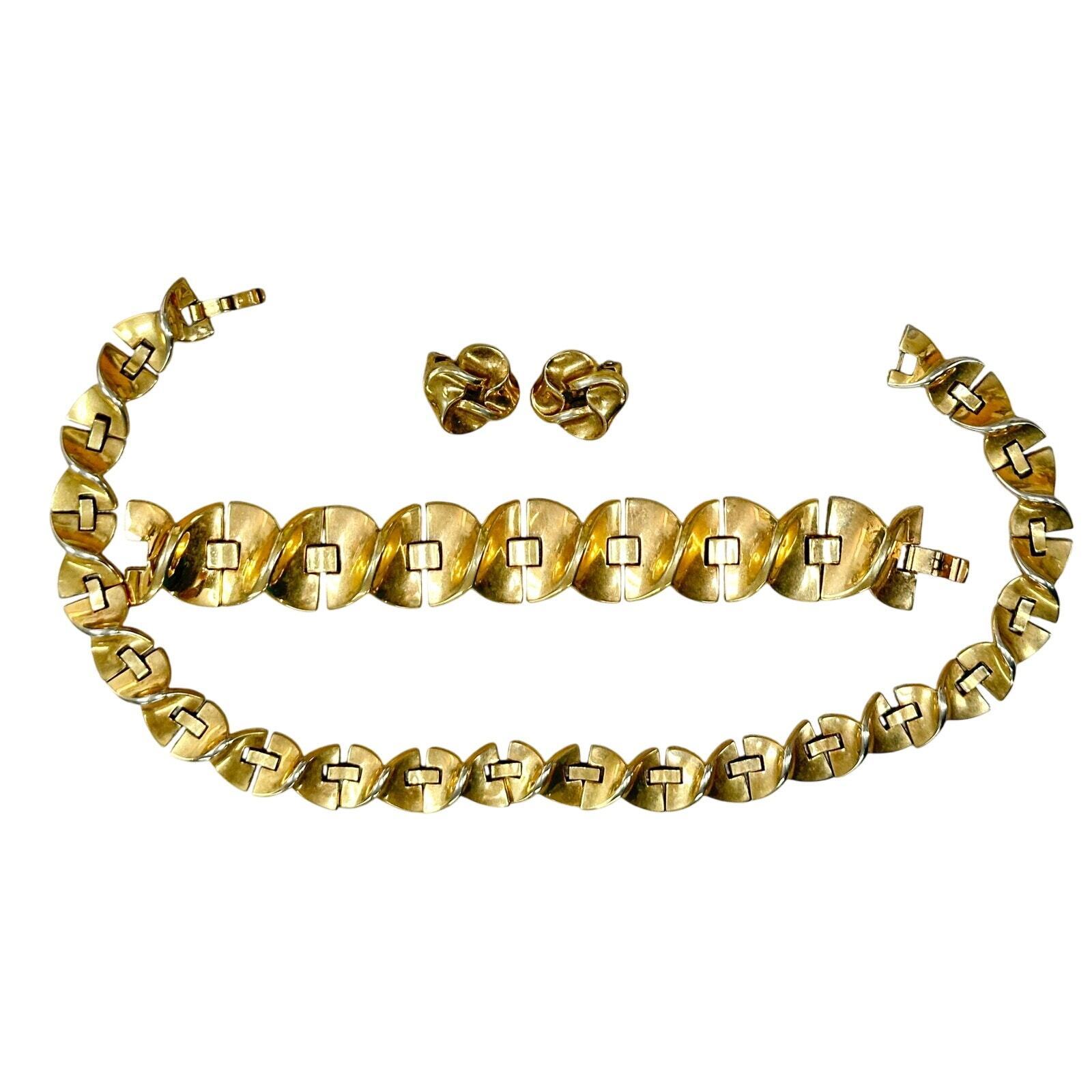 - Vintage Trifari Crown Signed Parure Necklace Bracelet Earrings EARLY Rare SET