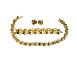 Vintage Trifari Crown Signed Parure Necklace Bracelet Earrings EARLY rare SET- IN GOOD CONDITION, NOT GREAT- IT IS MISSING THE BAR THAT THE BRACELET closes over, and needs a good polish. I have had it stashed away for over 35 years, thinking I'd fix it. But here it is! It can be repaired. The necklace and earrings are fine but need to be polished. All are signed Trifari with the crown, pat. pend.