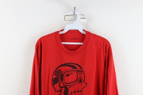 - Vintage Troy Lee Designs Mens Large Faded Skull Racing Long Sleeve T-Shirt Red