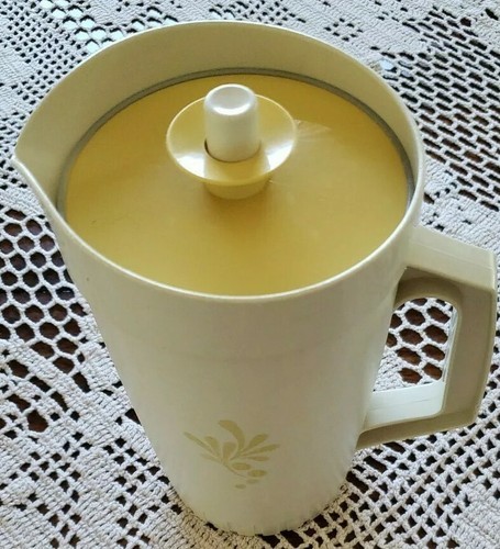 - Vintage Tupperware 1 Qt Pitcher ~ 874-14 ~ Almond Harvest Gold ~ Push Button Lid