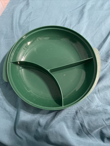 - Vintage Tupperware Reheatables Divided Dish W/ Lid Microwave #2604B-4 Green USA