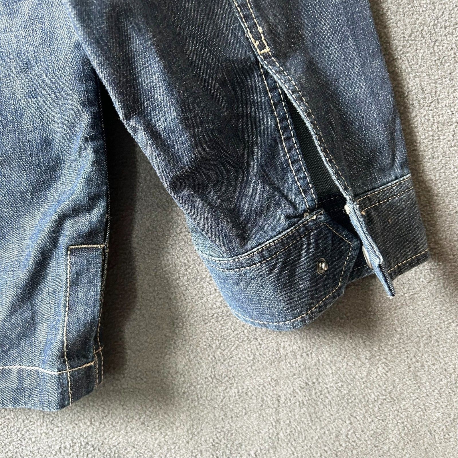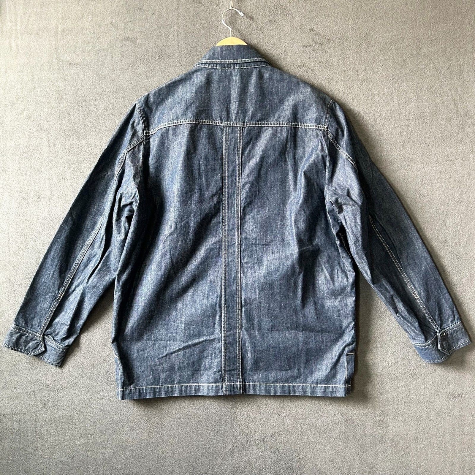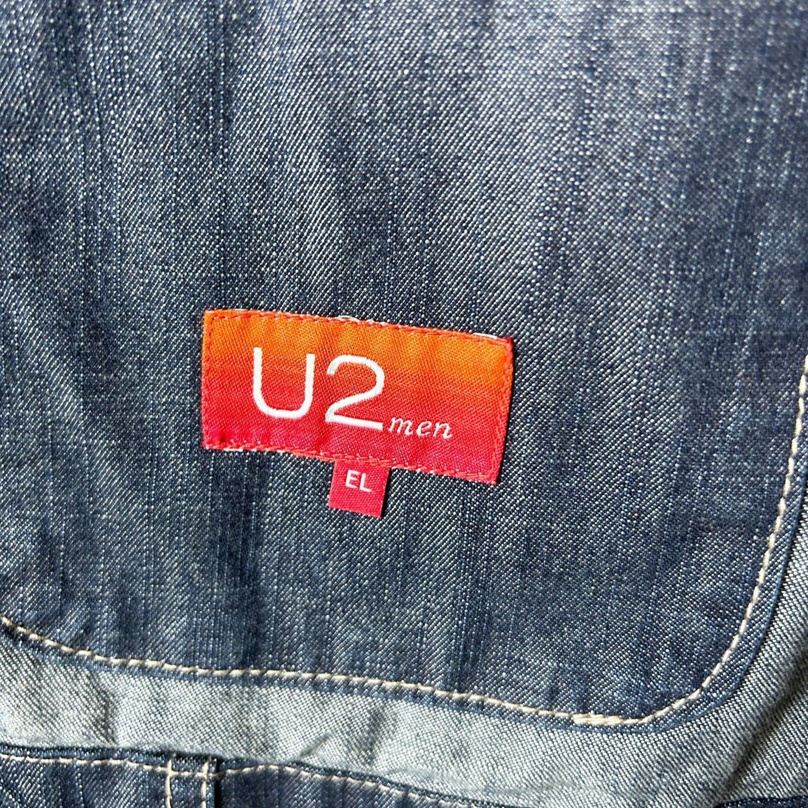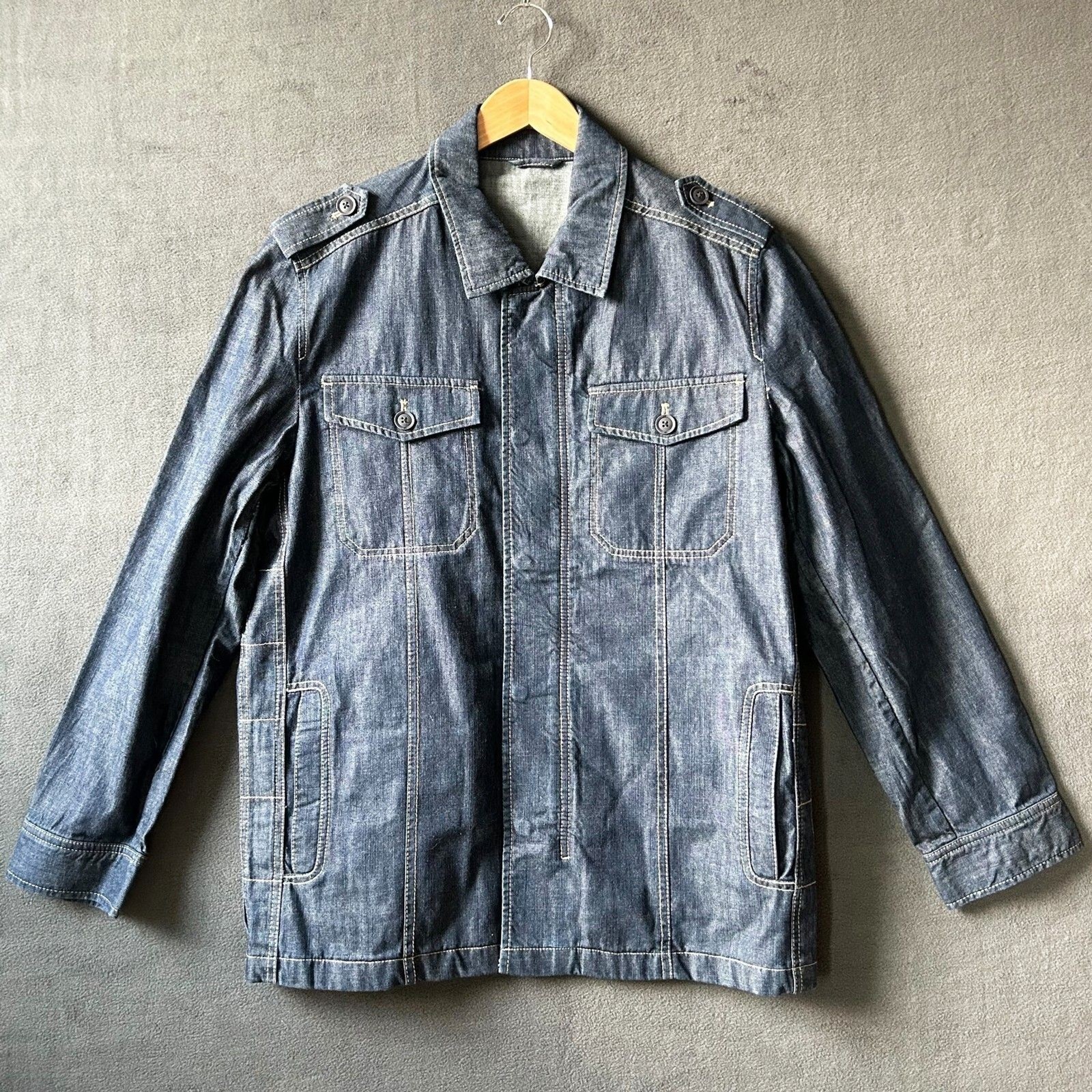 - Vintage U2 Men Blue Denim Coat Snap/Zip Front Epaulettes Pockets - Men's Size EL
