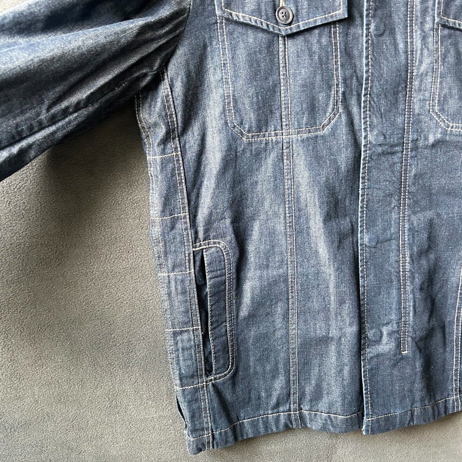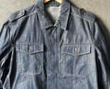 Vintage U2 Men Blue Denim Coat Snap/Zip Front Epaulettes Pockets - Men's Size EL