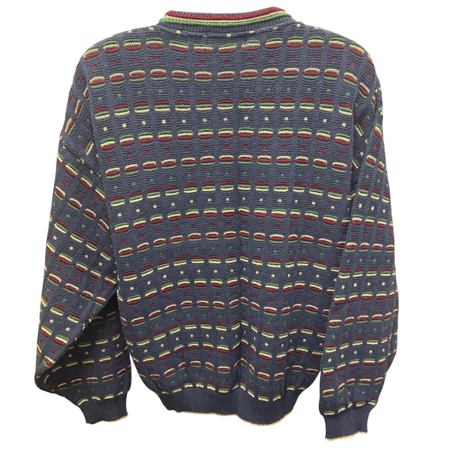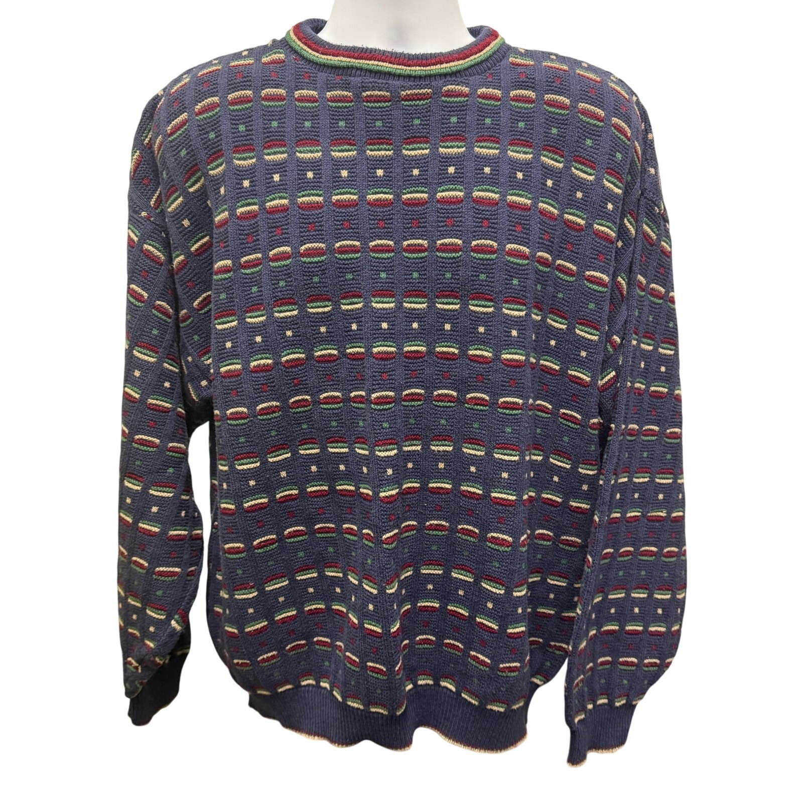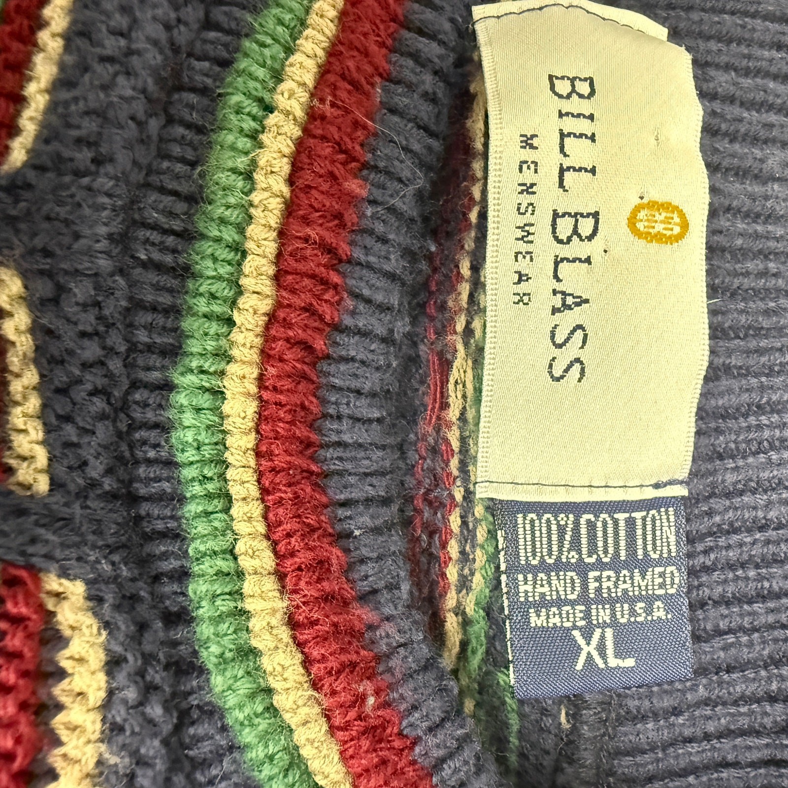 - Vintage USA Bill Blass Men's XL Sweater Pullover 100% Cotton Hand Framed Rainbow