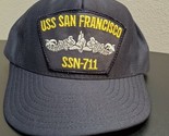 Vintage New Without Tags USS San Francisco SSN-711 Submarine Dolphins US Navy Submarine Snapback Hat. Made in USA. Embroidered patch. Very dark blue, almost black.