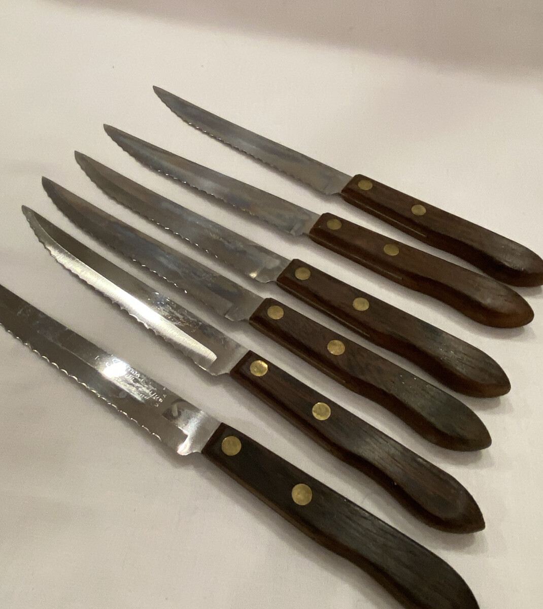 - Vintage Utica Super Edge Stainless Steel Steak Set in Wooden Holder Set of 6