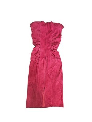 - Vintage Vakko Pink Kid Suede Hourglass Midi Ruched Bodycon Dress W25"