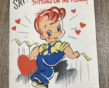 Vintage Valentine Boy on Fence All Out for You 1930s
