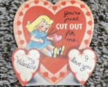 Vintage Valentines Day Card Blond Girl w Scissors You're Just Cut Out For Me