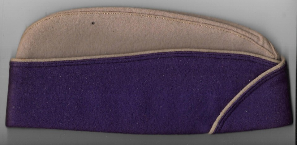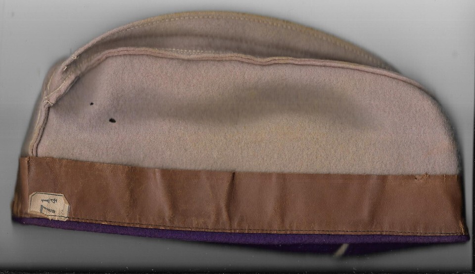 Tagged as 7 1/4 although seems a little smaller to me. There are some moth bites that go all the way through. These could be hidden by pins. I think though that the hat itself is pretty scarce and doesn't require any embellishment. I believe it dates from the time of the Second World War and represents home front support..