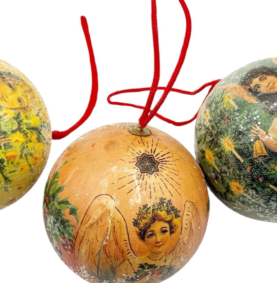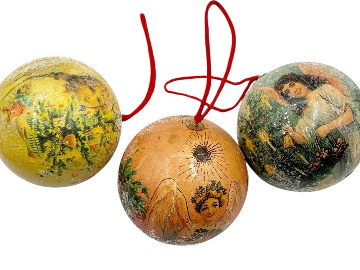 - Vintage Victorian Angels Christmas Ornaments Lot 3 Decoupage Balls 3 Inch Rustic
