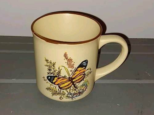 - Vintage Viking Handcrafted In Korea Orange Striped Banded Butterfly Coffee Mug