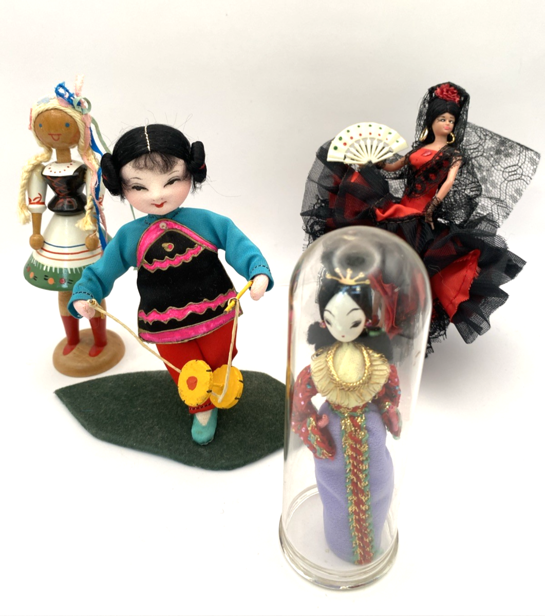 - Vintage Walt Disney Miniature Small World International Dolls Lot of 4