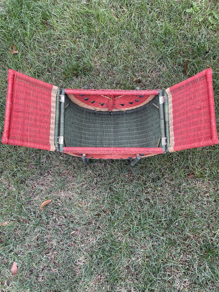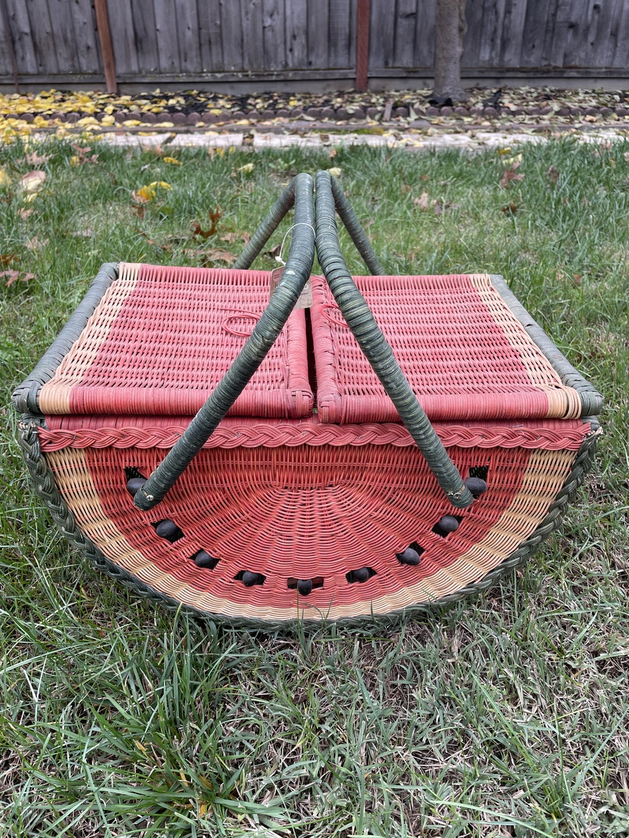 - Vintage Watermelon Wicker Picnic Basket with Lid