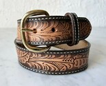 - Vintage Western Tooled Leather Belt Cowboy Style with Brass Buckle-Men's Size 26