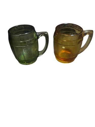 - Vintage Whiskey Barrel Mug Shot Glasses Tooth Pick Holders Amber And Green Glass