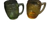 Vintage Whiskey Barrel Mug Shot Glasses Tooth Pick Holders Amber And Green Glass. Condition is Used. Shipped with USPS Ground Advantage.