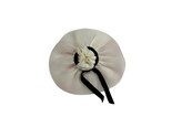 Elegant vintage doll hat in white sheer fabric with a gathered crown and black ribbon accent. Perfect accessory for Barbie, clone, or other 11oe? fashion dolls.