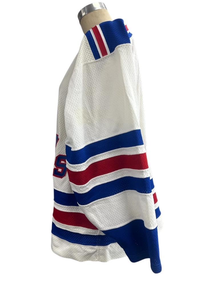 Vintage White New York NY Rangers CCM Maska COSBY NHL Hockey Jersey Size 44 Fight Strap Previously owned but remains in good condition with a few yellow spots from prolonged and improper storage Comes as shown