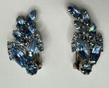 - Vintage Wiesner Blue Marquise Rhinestone Rhodium Plated Clip On Earrings