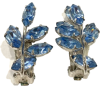 - Vintage Wiesner Silver-Tone and Blue Rhinestone Leaf Clip On Earrings