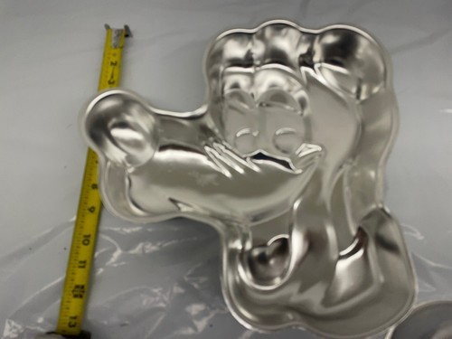 This vintage cake pan from Wilton is the perfect addition to any collector's kitchen. The pan features a fun and unique dog shape modeled after Pluto from Walt Disney Productions. Made in Korea, this baking mold is perfect for any Disney lover looking to create a one-of-a-kind cake. The set includes everything you need to get started on your baking adventure.