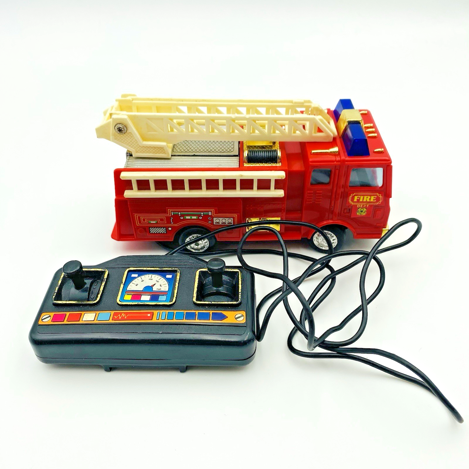 - Vintage Wired Remote Control Fire Truck Red Gold Unbranded RC Toy - Tested Works