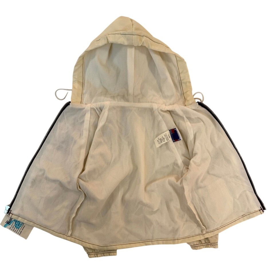 Vintage late 1970s/80s Wonderalls toddler jacket ? new with tags, deadstock. Navy with "Yachting" sailboat embroidery. Zip front, hood, and soft lining.