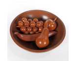 Vintage Wood Fruit Bowl & Wood Fruits Banana Pear Apple Grape 70s 80s Kitsch