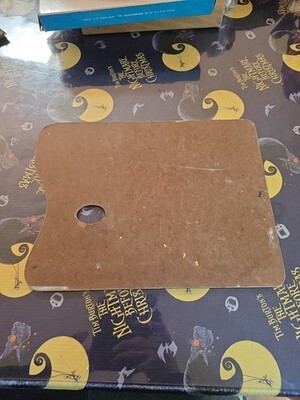 - Vintage Wooden Artist Painters Palette With Paint Remnants 12”x9” Pre-Loved