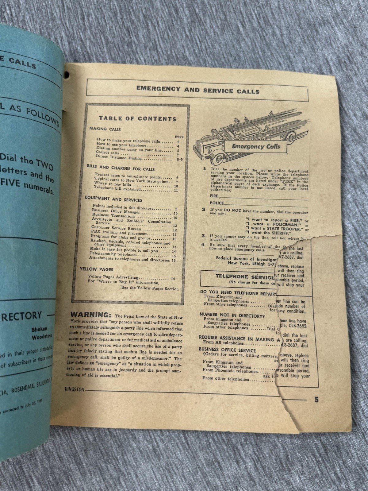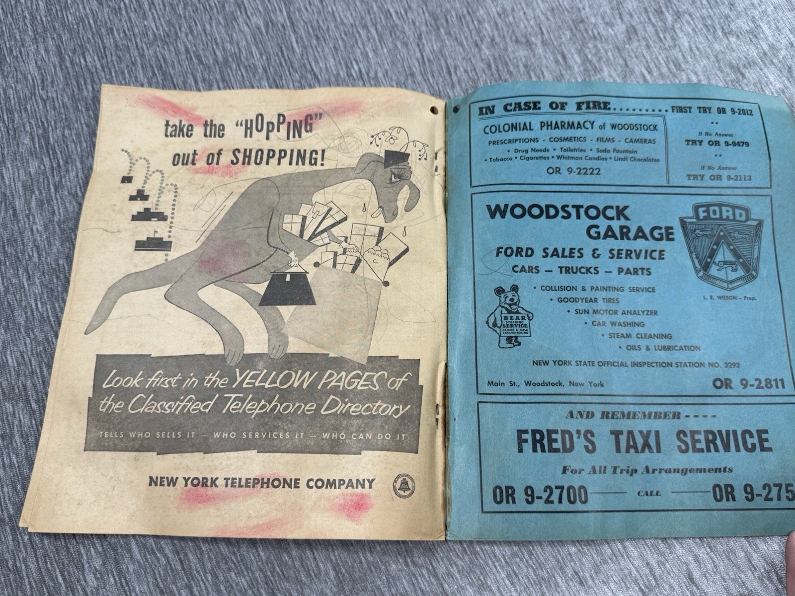 - Vintage Woodstock, NY Telephone Directory Book 1957-1958 New York Genealogy