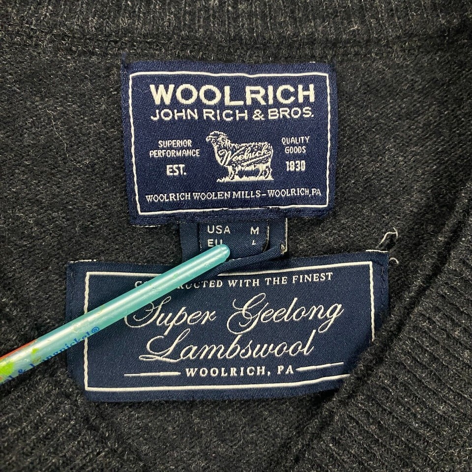- Vintage Woolrich Sweater Adults Medium Gray V-Neck John Rich & Bros Wool Mens