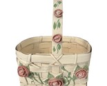 Vintage Woven Basket with Ceramic Roses ? Hand-Painted ? Made in the Philippines ? 8" x 6.25" x 4"