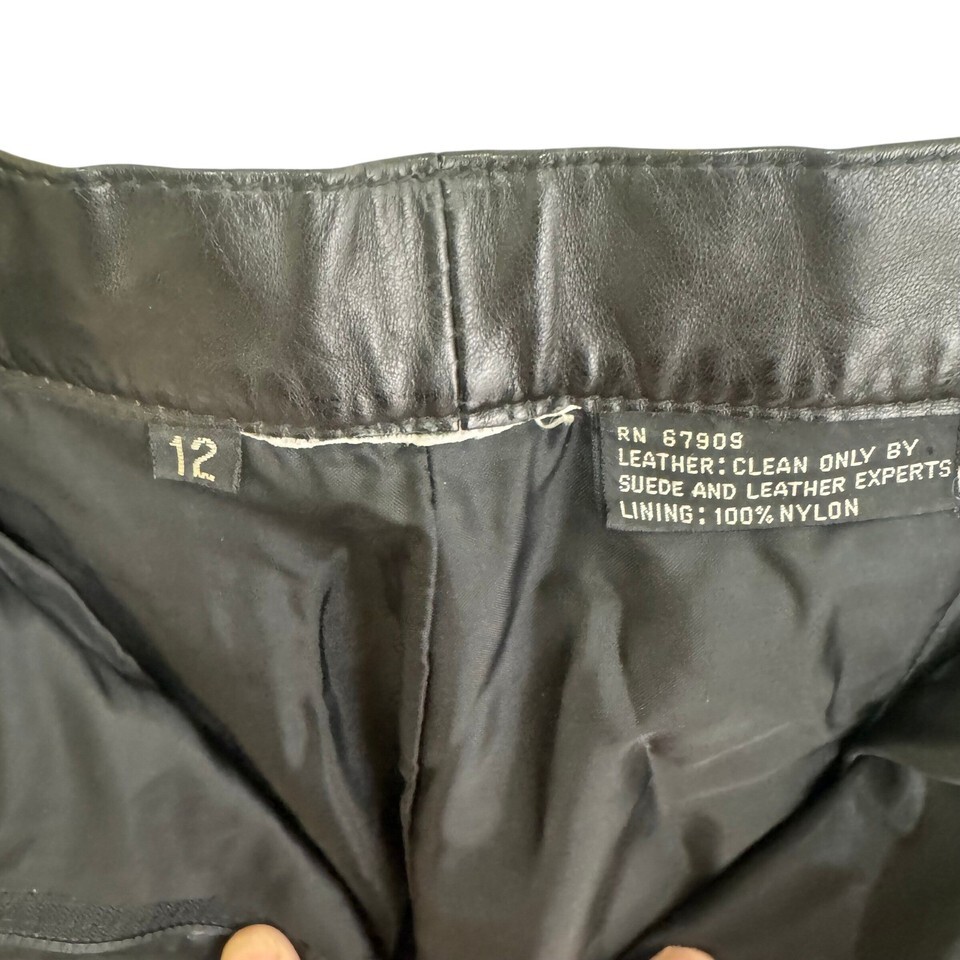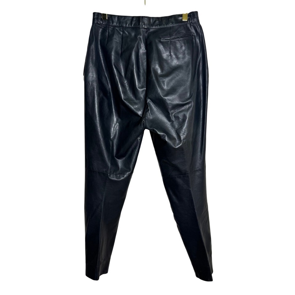 Keywords: leather pants, vintage leather pants, high waist pants, tapered leg pants, pleated pants, black leather pants, size 12 pants, retro pants, classic pants, leather trousers, womens leather pants, vintage trousers, high rise pants, dress pants