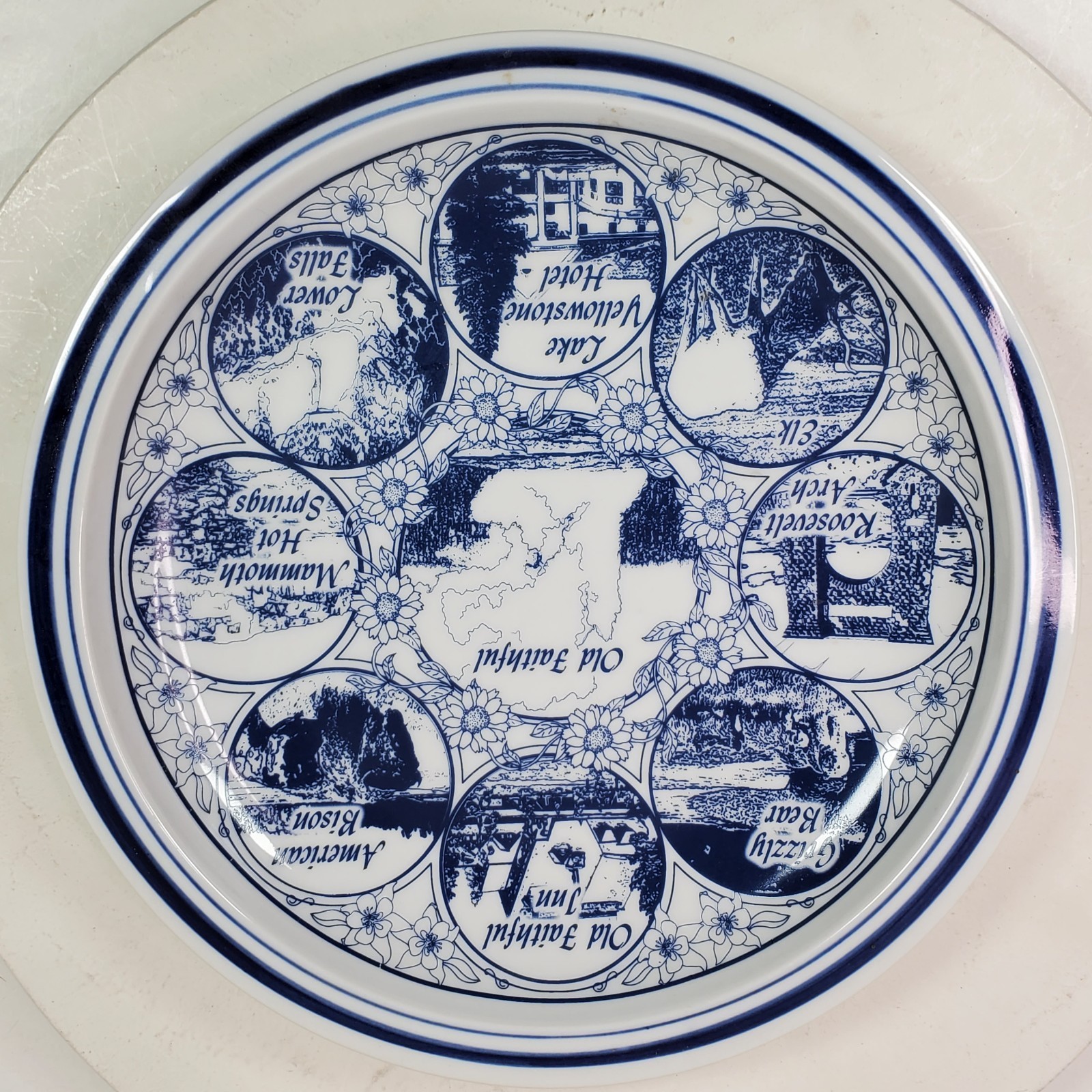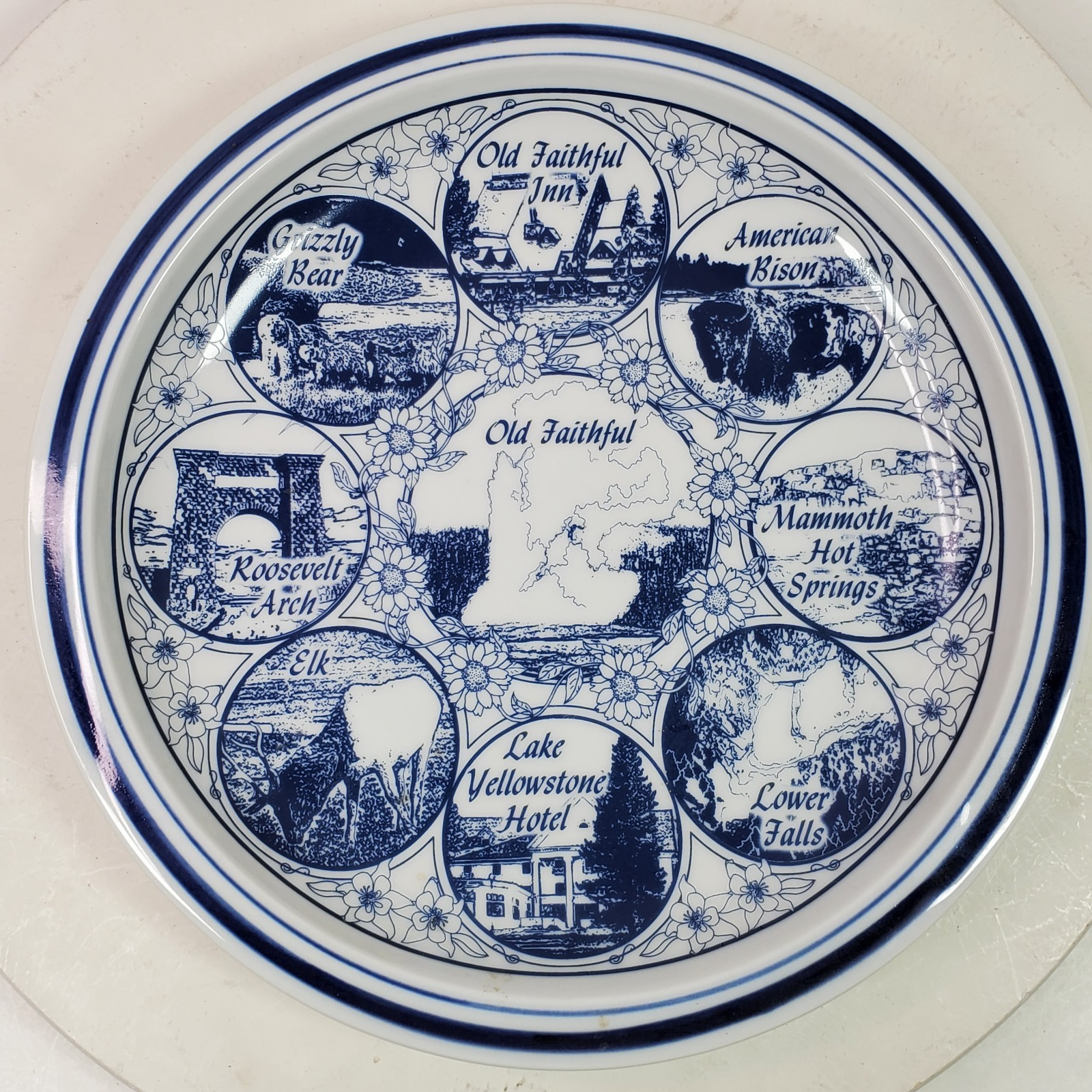 - Vintage Yellowstone National Park Collector Plate 10.5 Inch Blue White Heavy